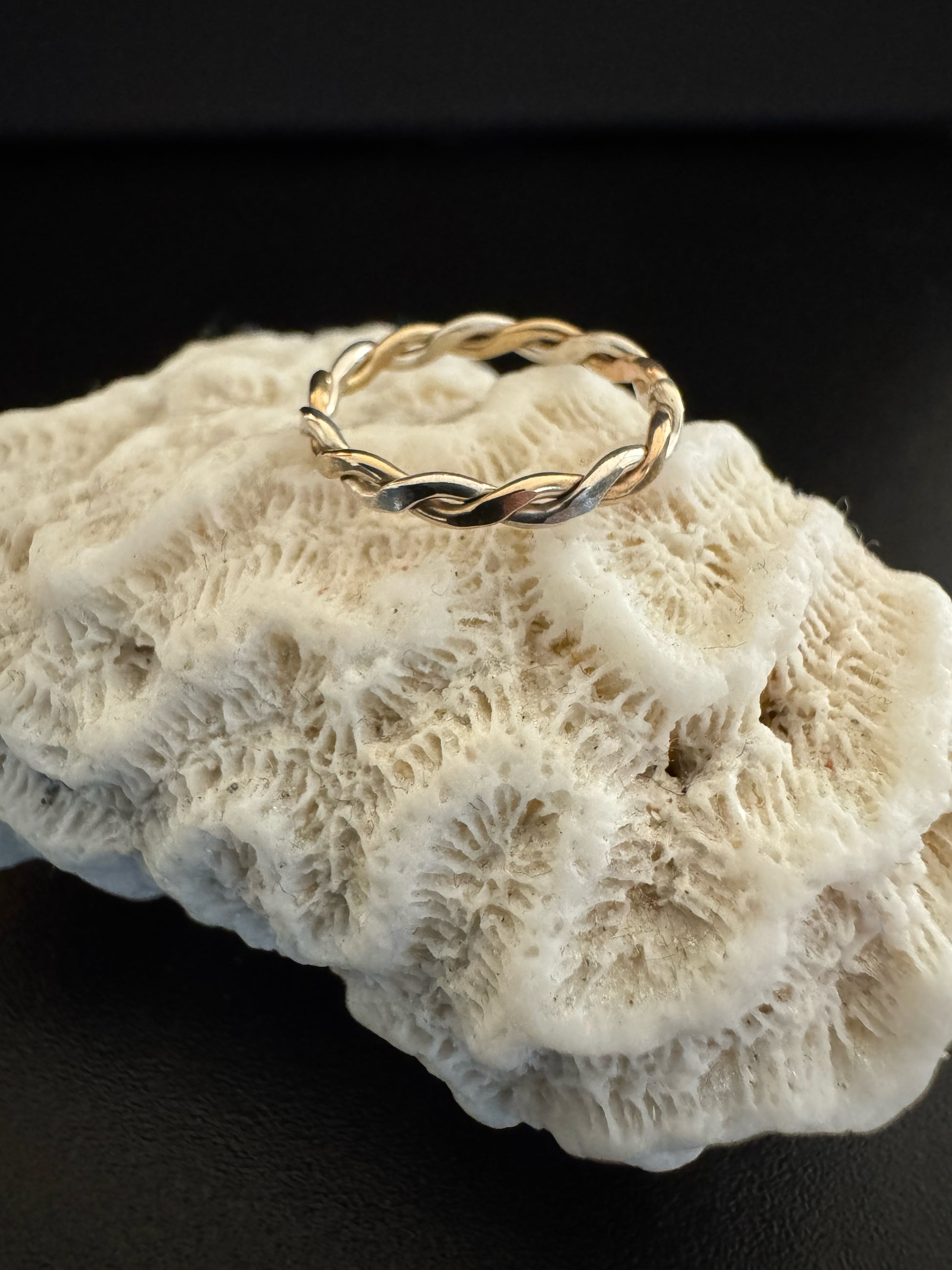 Made of 925 sterling silver, this delicate gold and silver twist is available in sizes 1-16. We pride ourselves in being able to give you the perfect fit for your midi, pinky, finger, thumb, or toe.